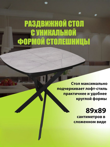 Стол раздвижной ГРАЦИЯ-М, 89/120х89 см, каспий серый, черный, RI-COM