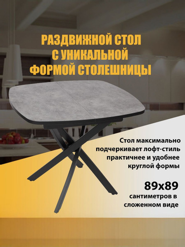 Стол обеденный раздвижной/раскладной Аффогато ЛДСП бетон серый опора №3