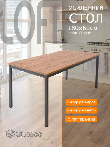 StRoss Стол кухонный обеденный Лофт 180 х 60 см, вотан волокна вдоль / графит