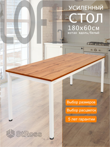 StRoss Стол кухонный обеденный Лофт 180 х 60 см, вотан волокна вдоль / белый