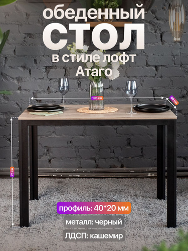 Стол кухонный обеденный письменный лофт Атаго черный/серый