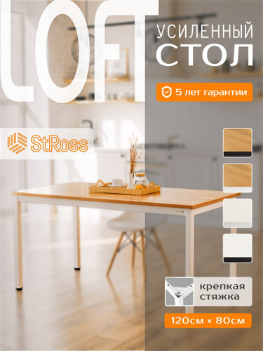 StRoss Стол обеденный Лофт 120 х 80 см, вотан / белый