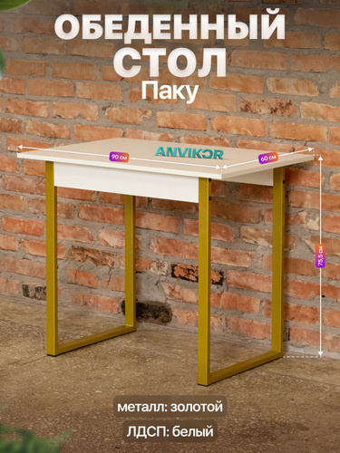 Стол кухонный обеденный лофт 90х60х75.5 см Паку золотой/белый
