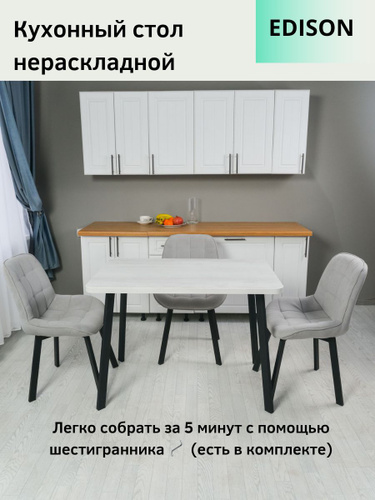 Стол кухонный обеденный нераскладной EDISON лофт, 110х70х75 см. Столик прямоугольный нераздвижной для кухни и гостиной