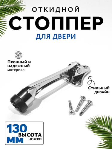 Стоппер, ограничитель для двери напольный, фиксатор откидной 130мм, хром