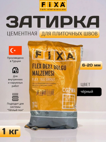 Затирка для плитки чёрная 1кг, для швов, для мозаики, для керамогранита, фуга для швов, цементная, Fixa