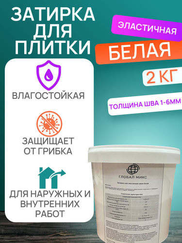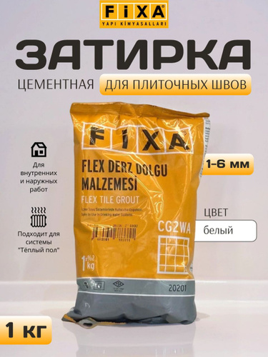 Затирка для плитки белая 1кг, для швов, для мозаики, для керамогранита, фуга для швов, цементная, Fixa