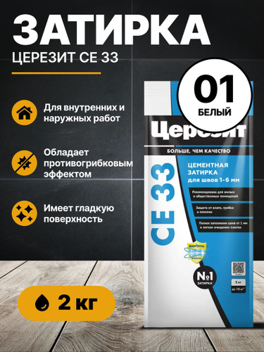 Затирка для швов Церезит СE 33 белый 01, 2 кг/Ceresit CE33 цементная для плитки