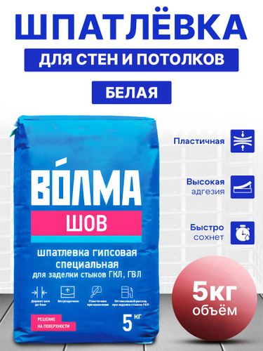 Шпатлевка для стен белая Волма Шов 5 кг, гипсовая шпаклевка для внутренних работ
