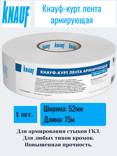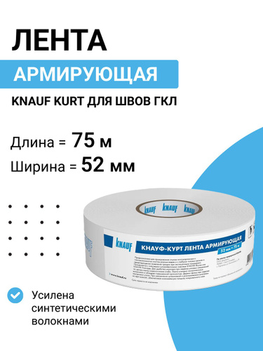 Армирующая лента Кнауф Курт для швов ГКЛ (52мм х 75м)
