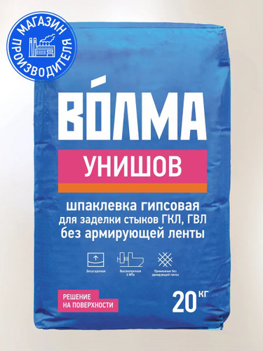 Шпаклевка для заделки стыков ГКЛ, ГВЛ без армирующей ленты ВОЛМА Унишов, 20кг