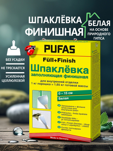 Шпатлевка Финишная Pufas 1 кг. Германия Пуфас для стен и потолков, высокая эластичность,сухая, шпаклевка для внутренних работ, белая,для стен и потолков,для гипсокартона