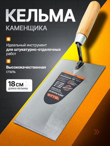 Кельма мастерок каменщика 180 мм для строительных смесей, прорезиненная ручка