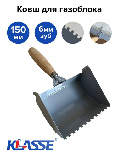 Кельма-ковш для газобетона 150 мм KLASSE, кельма каменщика для кладки блоков (KL0703-150)
