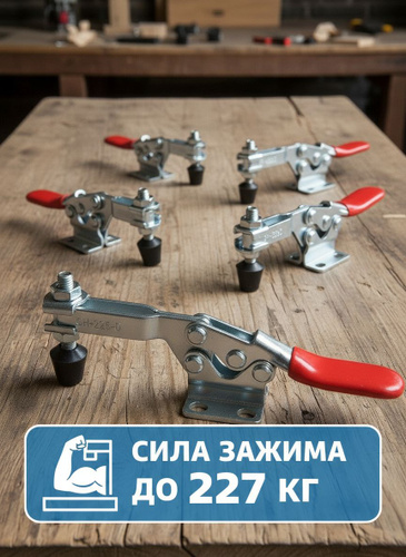 Зажим прижим рычажный струбцина механическая с горизонтальной ручкой 227кг быстрозажимная - 2 штуки