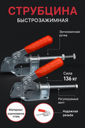Набор струбцин прижимов столярных рычажных горизонтальных - 2 штуки