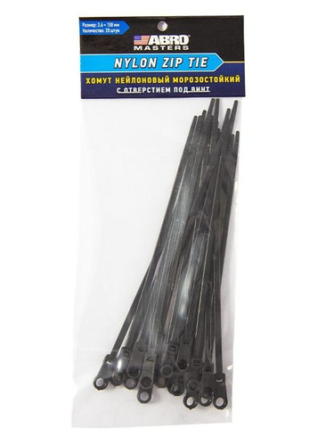 Стяжка нейлоновая морозостойкая с отверстием под винт черные (3,6 мм х 150 мм х 20 шт)