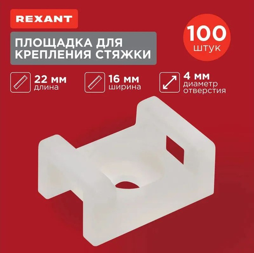 Площадка для крепления стяжки 22х16 мм (ПС-2), черная, упаковка 100 шт. REXANT