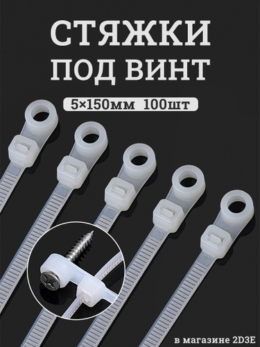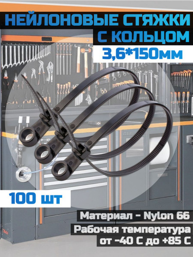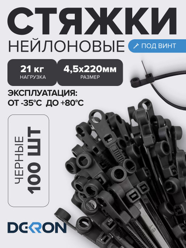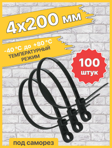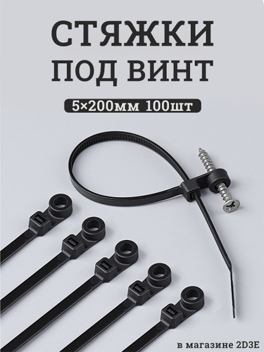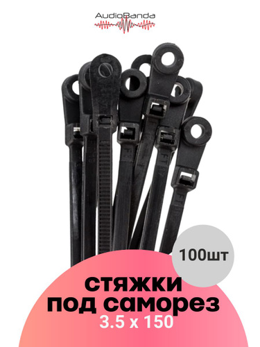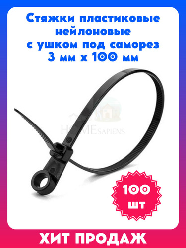Стяжки пластиковые нейлоновые с ушком под саморез 3 мм х 100 мм (черные, 100 штук), хомут прочный, кабельная стяжка