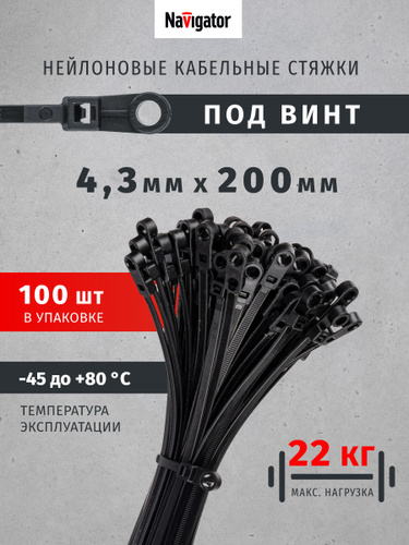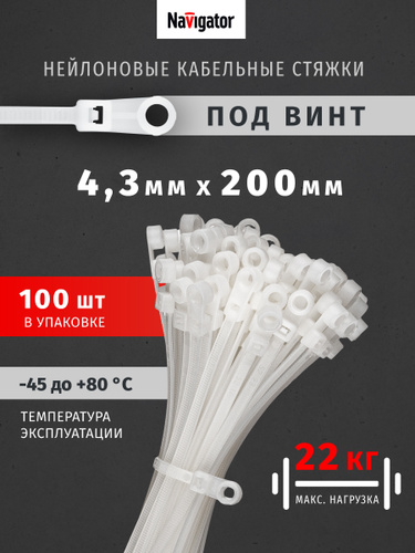 Стяжки пластиковые, хомуты Navigator 93 610 NCT-043-200-100WH, под винт, белый, упаковка 100 шт.