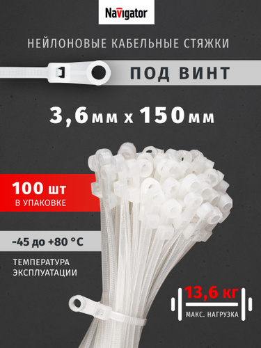 Стяжки пластиковые, хомуты Navigator 93 609 NCT-036-150-100WH, под винт, белый, упаковка 100 шт.