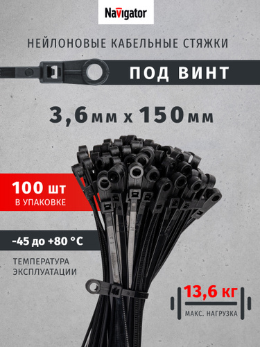 Стяжки пластиковые, хомуты Navigator 93 612 NCT-036-150-100BL, под винт, черный, упаковка 100 шт.