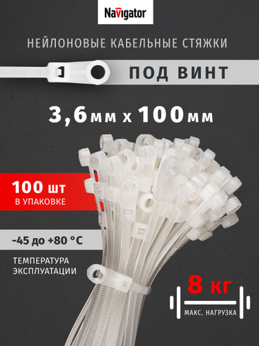Стяжки пластиковые, хомуты Navigator 93 608 NCT-036-100-100WH, под винт, белый, упаковка 100 шт.