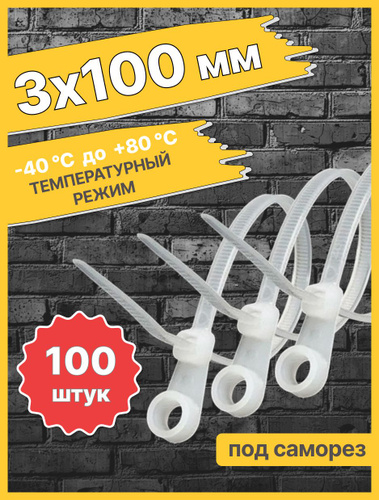 Стяжки (под саморез) пластиковые, нейлоновые, белые, термостойкие 3 х 100 (100 шт.)