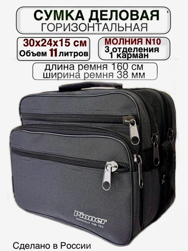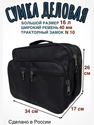Сумка мужская рабочая деловая мессенджер ,16 литров, молния N10, горизонтальная, Оксфорд 600, черная , с карманом ,на плечо, рабочая