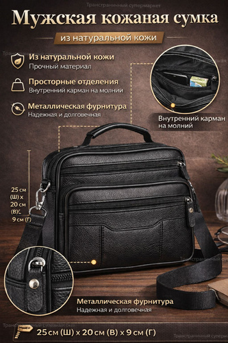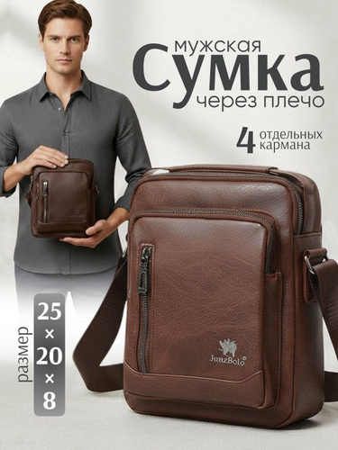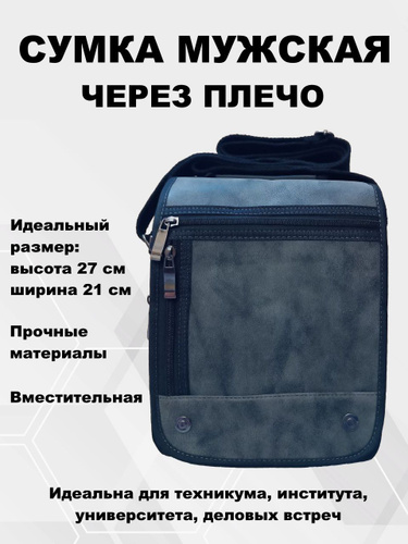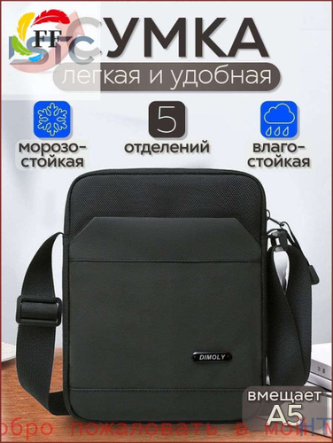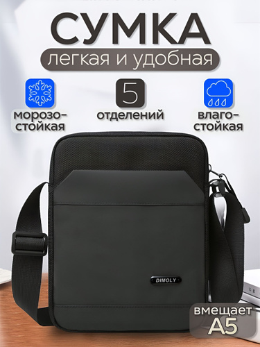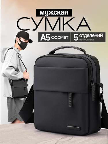 Мужская сумка через плечо, компактная, вместительная, для документов и тетрадей А5, с карманами, универсальная