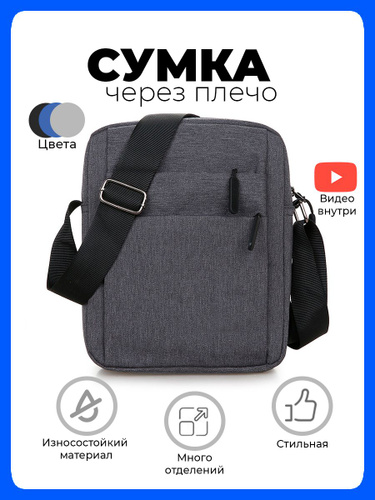 Сумка через плечо мужская текстильная для документов, цвет серый