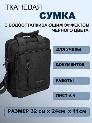 Сумка через плечо мужская Stylesbox,сумка планшет текстильная для документов черного цвета формат А 4.