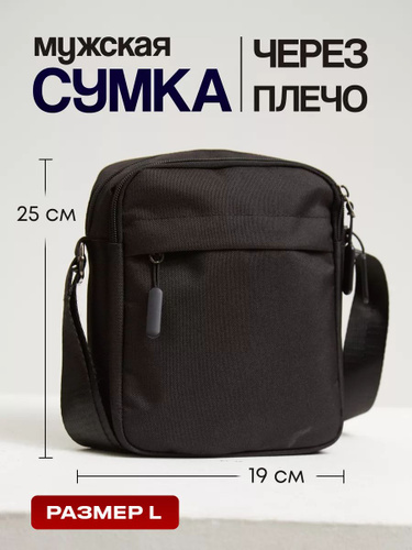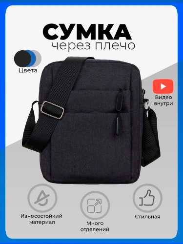 Сумка через плечо мужская текстильная для документов, цвет черный