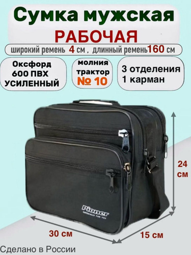 Сумка мужская рабочая деловая мессенджер, "Деловая-УМ5" полиэстер, молниия чёрная, рабочая .для инструментов,