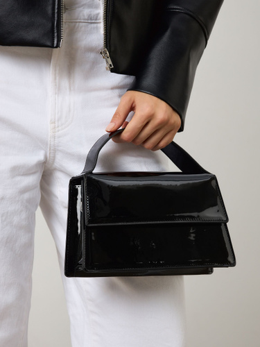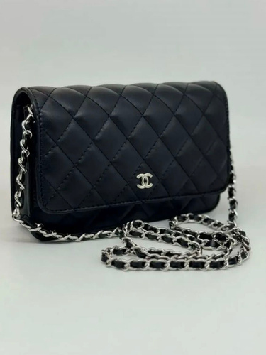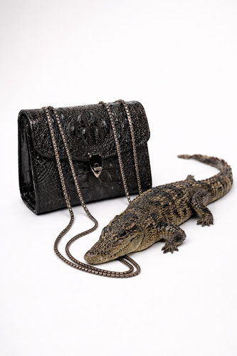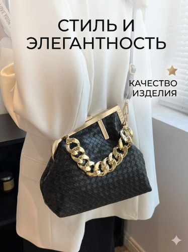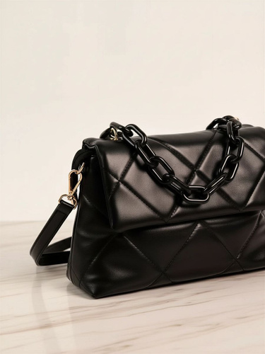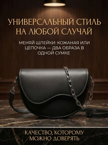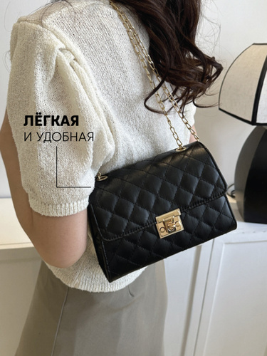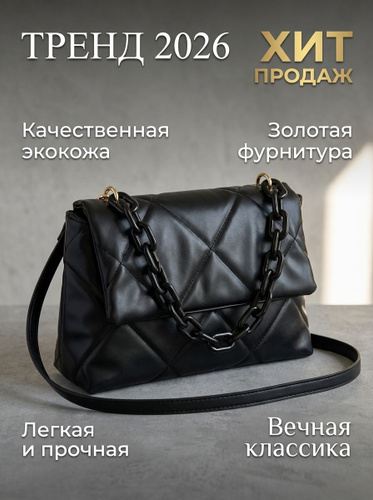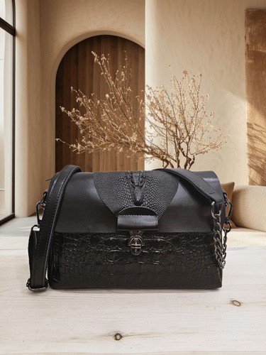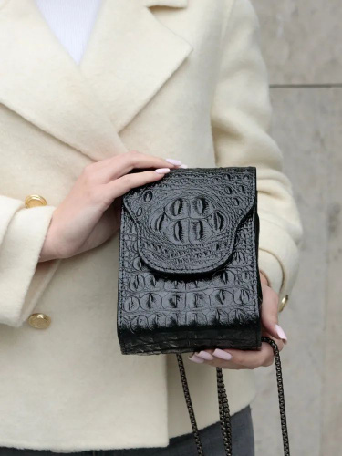 Сумка женская кросс-боди BagBe, клатч на цепочке, чёрная под крокодила,