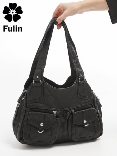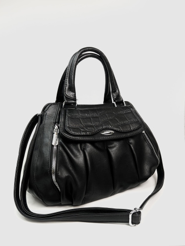 Сумка женская через плечо кросс-боди DakkottaGreen ,натуральная черная кожа с фактурой крокодила,два сьёмных ремня,два больших отделения и пять карманов ,держит форму.