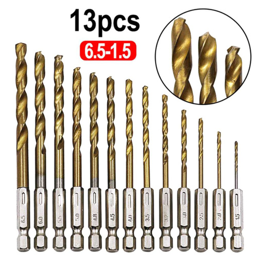 Набор спиральных сверл с круглым хвостовиком 1,5-6,5 мм, 13 шт., сверла из быстрорежущей стали титановым покрытием, деревообрабатывающие металлические инструменты