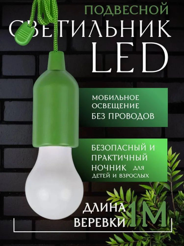 Лампочка на веревке, зеленый / Фонарик на батарейках 6088