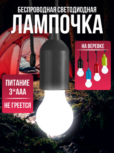 Лампа кемпинговая беспроводная, светильник на батарейках, лампочка на шнурке/ Беспроводная лампа на батарейках, LED ночник