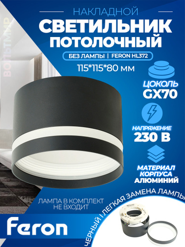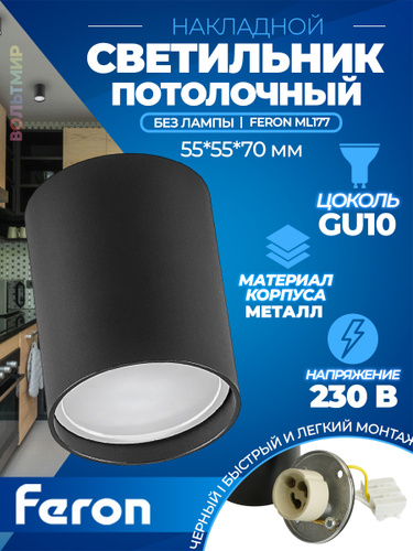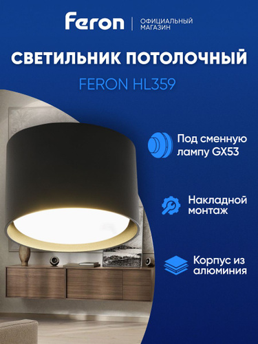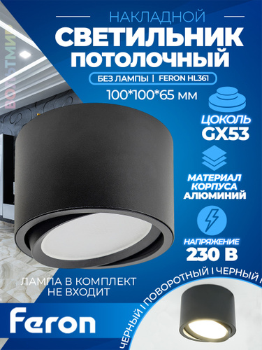 Светильник потолочный GX53, черный, 2 вида монтажа, Feron HL355 41508