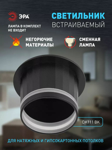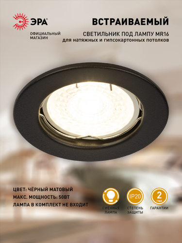 Встраиваемый светильник потолочный, спот, стакан, лофт ЭРА DK111 BK MR16 GU5.3 черный