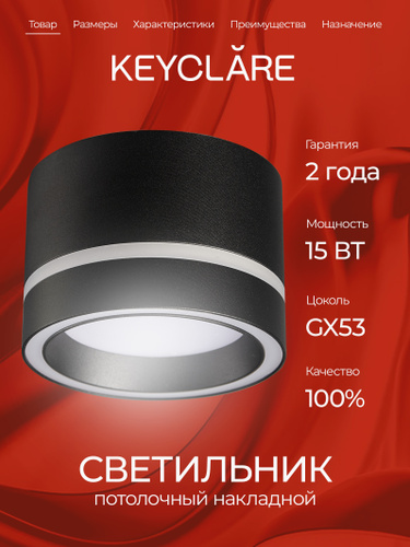 Накладной потолочный светильник спот черный под лампу с цоколем Gx53 KC-1503BK