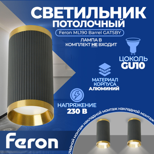 Светильник потолочный Feron ML190 Barrel GATSBY MR16 GU10 35W 230V, черный + античное золото 48851