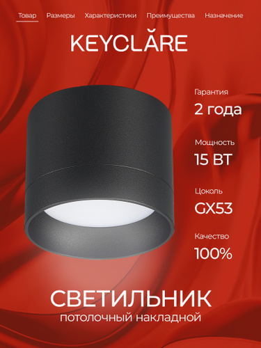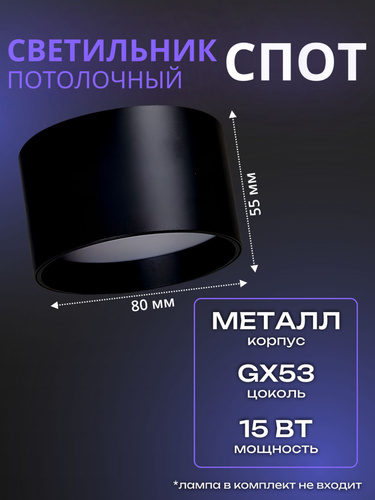 Светильник потолочный накладной GX53 EKS SHOT / Спот / черный