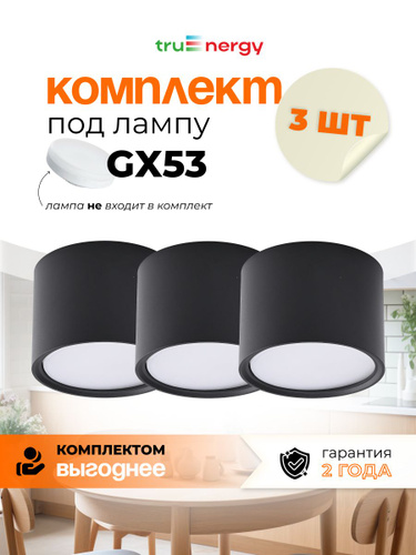 Светильник потолочный комплект 3 шт. / Набор точечных спотов GX53 / Черный truEnergy