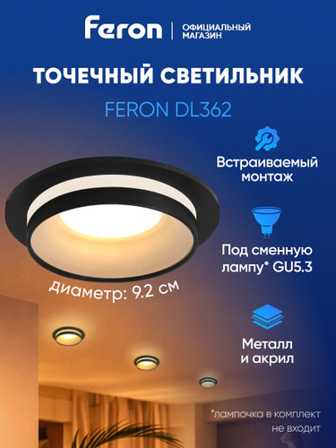 Светильник потолочный встраиваемый GU5.3, черный, Feron DL362 LUNA 48812