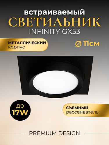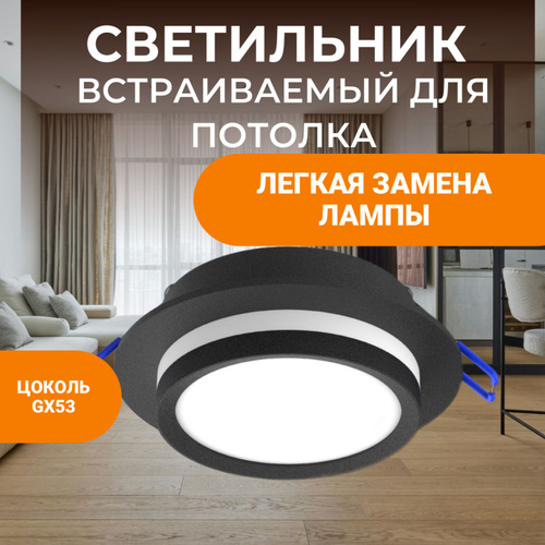 Светильник встраиваемый потолка gx53 INFINITY, точечный светильник потолочный черный, круглый