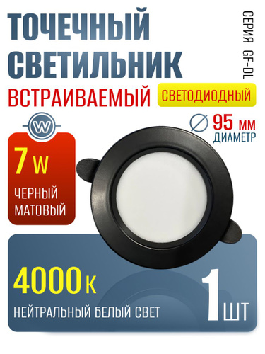 Светильник потолочный светодиодный встраиваемый / точечный /4000 К, 7 Вт, черный (1 шт)