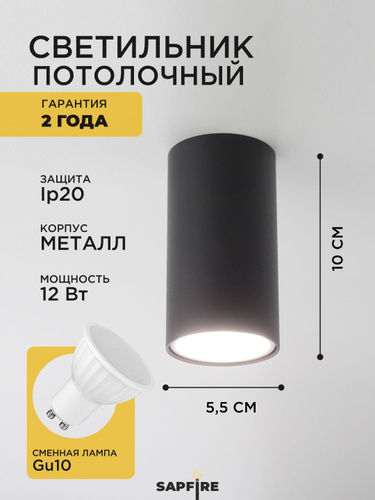 Светильник потолочный круглый / Точечный спот GU10 / Черный truEnergy