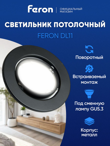 Светильник потолочный встраиваемый GU5.3 / чёрный матовый Feron DL11 48466